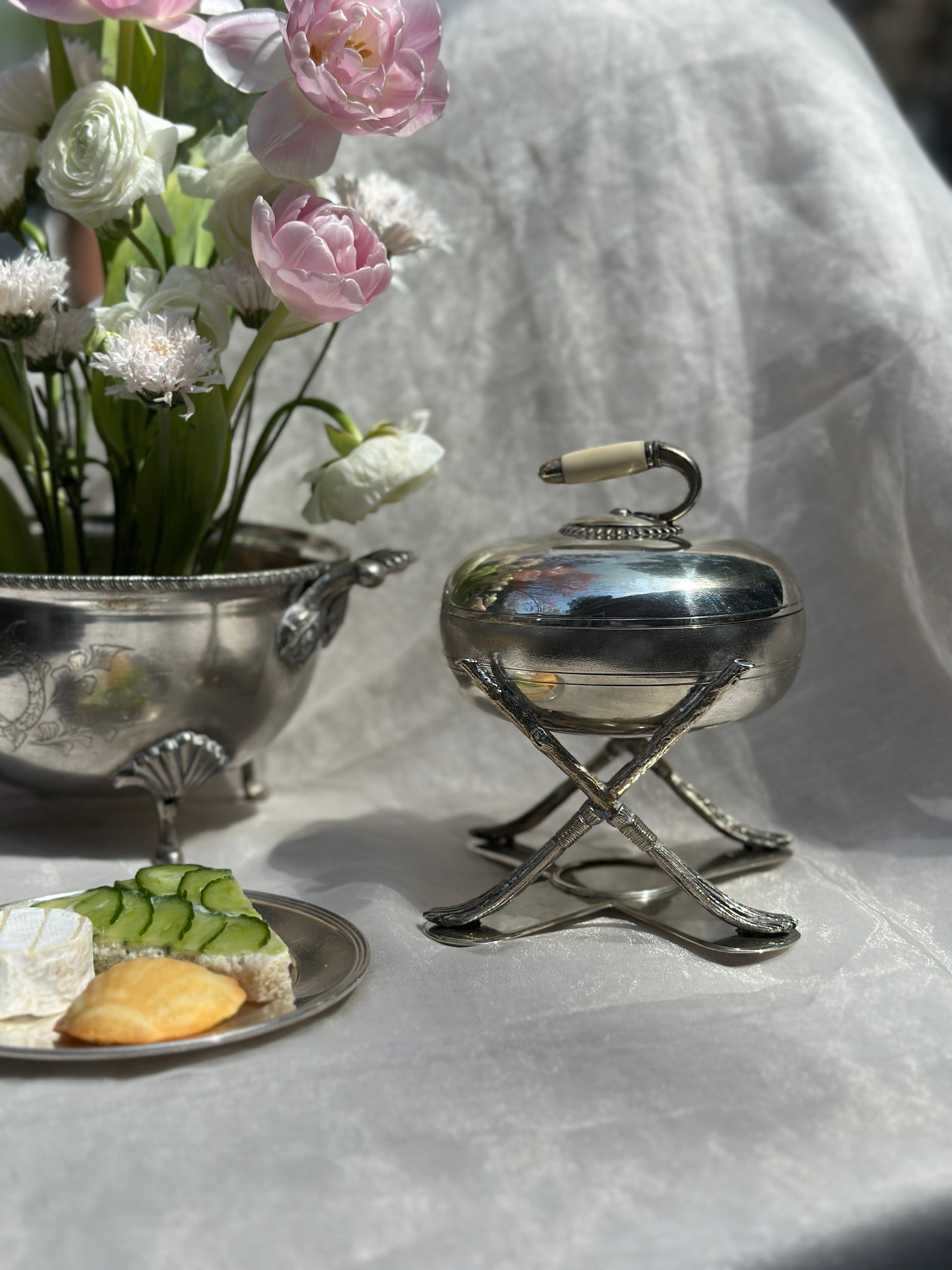 16 oz Antique Silver Plate Fenton Brothers Curling Stone 1875